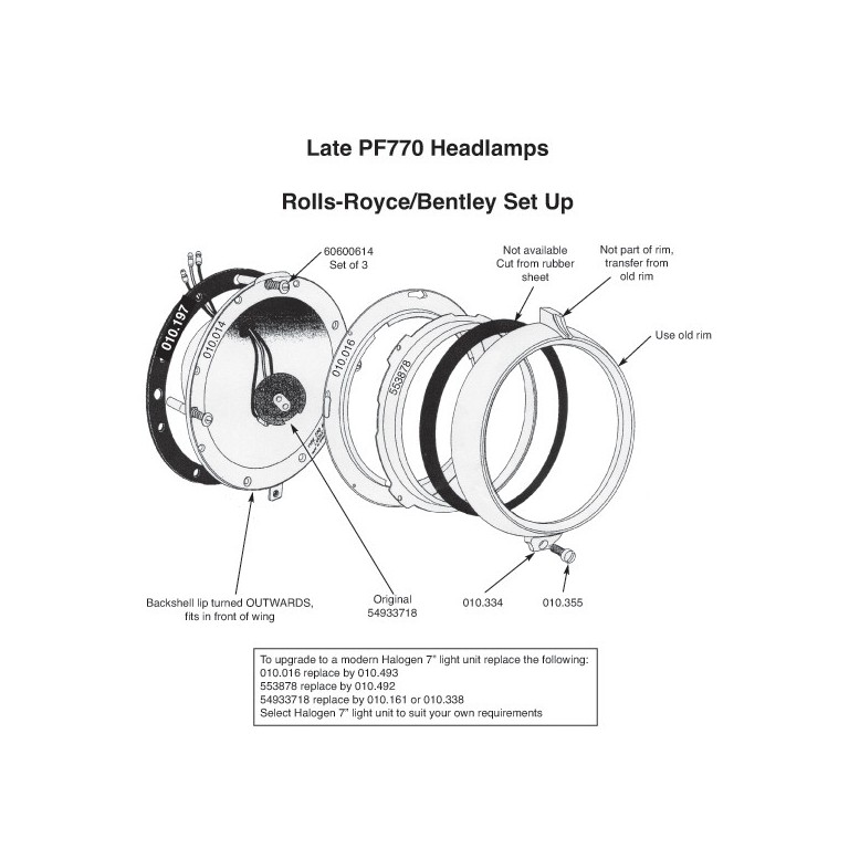 Retaining Rim for Late Type PF770 Headlamps. Used in conjunction with the seating rim to hold the lamp unit in position. Polished chrome finish. 553878