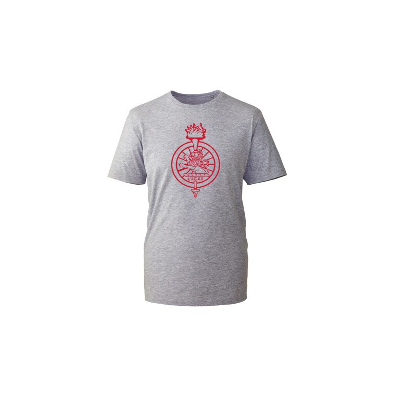 Lucas Flambeau T-Shirt Lucas flambeau DTG printed t-shirt. Heather Grey in size 3 Xtra Large. Fashion fit. Ribbed collar. Taped neck. Side seams. Twin needle stitching.100% organic combed ringspun cotton. 145gsm.