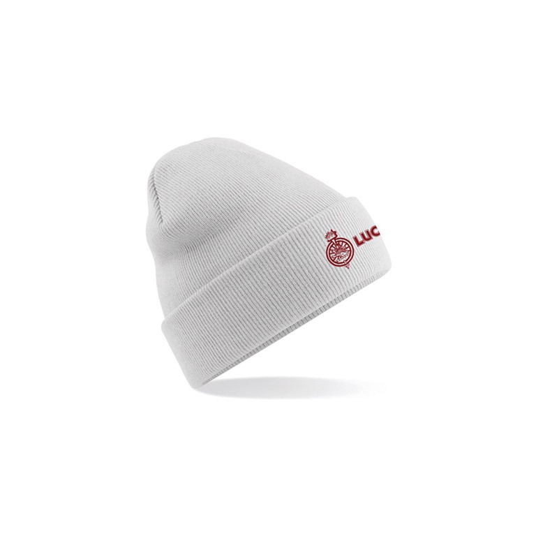 Lucas Text Cuffed Beanie in Light Grey Embroidered front with Lucas logo. Double layer knit. Cuffed design for optimal decoration. Machine wash warm iron on low heat. 72g weight. 100% soft-touch acrylic.