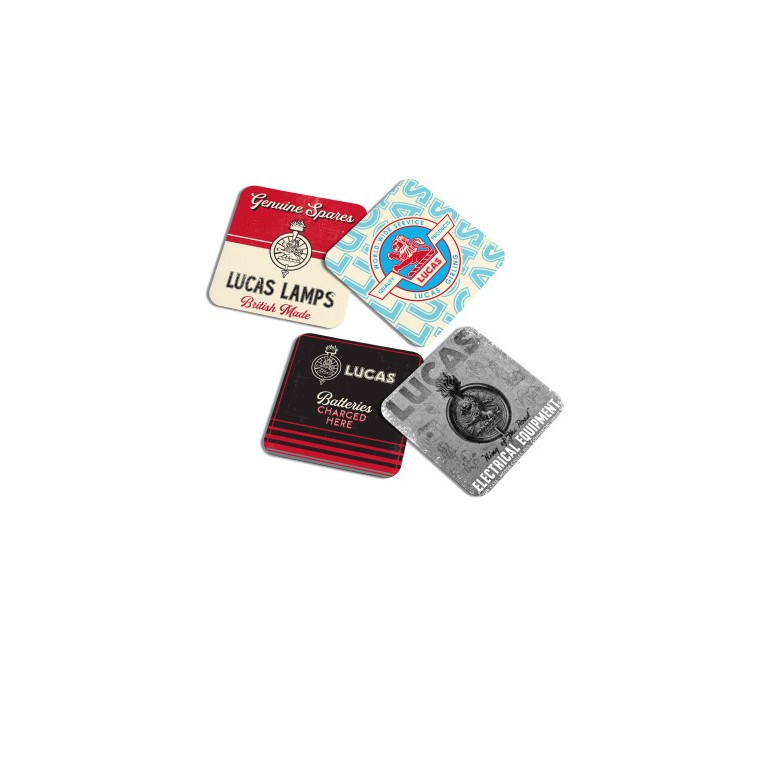Lucas Coaster Four Pack Four pack of Lucas branded coasters.1x Lucas Lion 1x Lucas King of the Road 1x Lucas Flambeau 1x Lucas Logo
