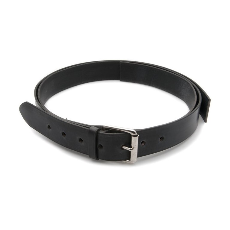 Leather Strap 44mm (1 3/4 in) wide with substantial plated buckle. It comes in two halves, the half with the buckle and the half with the holes to suit the buckle. As supplied the length is adjustable via the buckle from 2.055 metres (6 ft 9 in) to 1.880 metres (6 ft 2 in) but you can shorten it further by cutting and trimming the ends