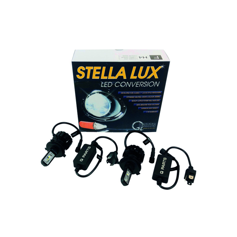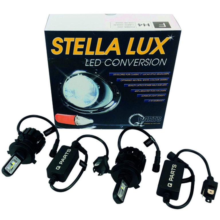 The Stella Lux H4 LED conversion represents a technological breakthrough for classic car owners delivering vastly improved road presence and visibility for a safe and confident driving experience whatever the conditions. With modern vehicle lighting levels 400% brighter than a standard H4 halogen bulb, emitting a neutral white colour, utilising latest HGL3 5530 LEDs from Lattice Power with enhanced light density. Designed and developed to fit Lucas 7" headlamps with H4 bulbs.