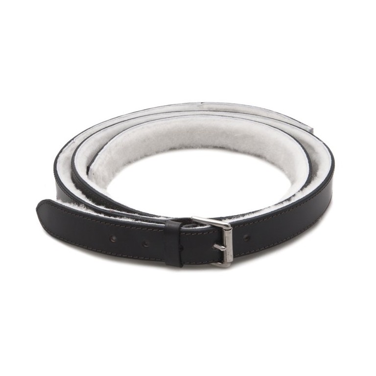 Brown Leather Strap 38mm (1 1/2 in) wide with substantial chrome plated buckle and wool lining on the inside of the strap to help reduce damage to the paintwork on your bonnet. It comes in two halves, the half with the buckle and the half with the holes to suit the buckle. As supplied the length is adjustable via the buckle from 2.055 metres (6 ft 9 in) to 1.880 metres (6 ft 2 in) but you can shorten it further by cutting and trimming the ends
