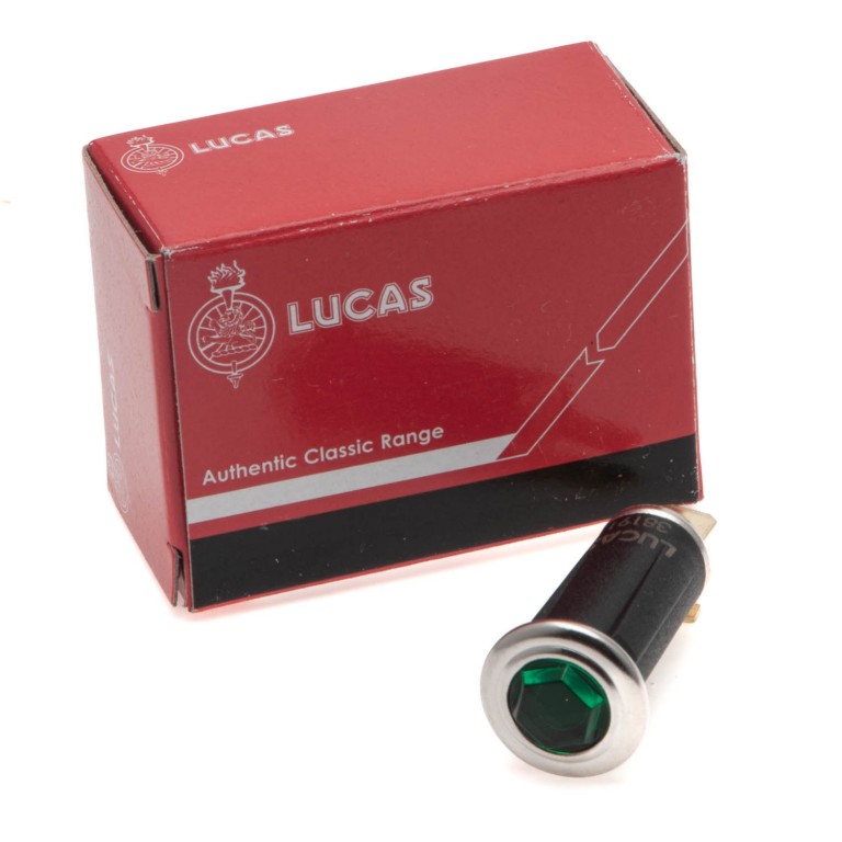 Lucas WL15 warning lamp as fitted to so many cars in the 1970's. This one is green we also do amber and red.