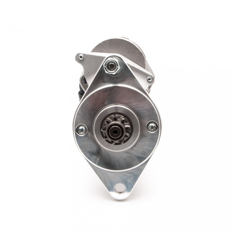 9 toothed gear. Strong, powerful, offset gear-reduced starter motor, delivering huge cranking torque through a set of steel internal gears.