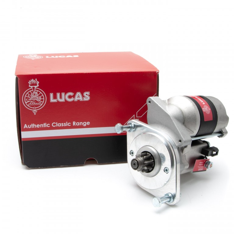 Lucas up-rated, lightweight starter motor, fits Jaguar E Type 4.2 Straight 6 (29mm pinion). 9 tooth gear.
