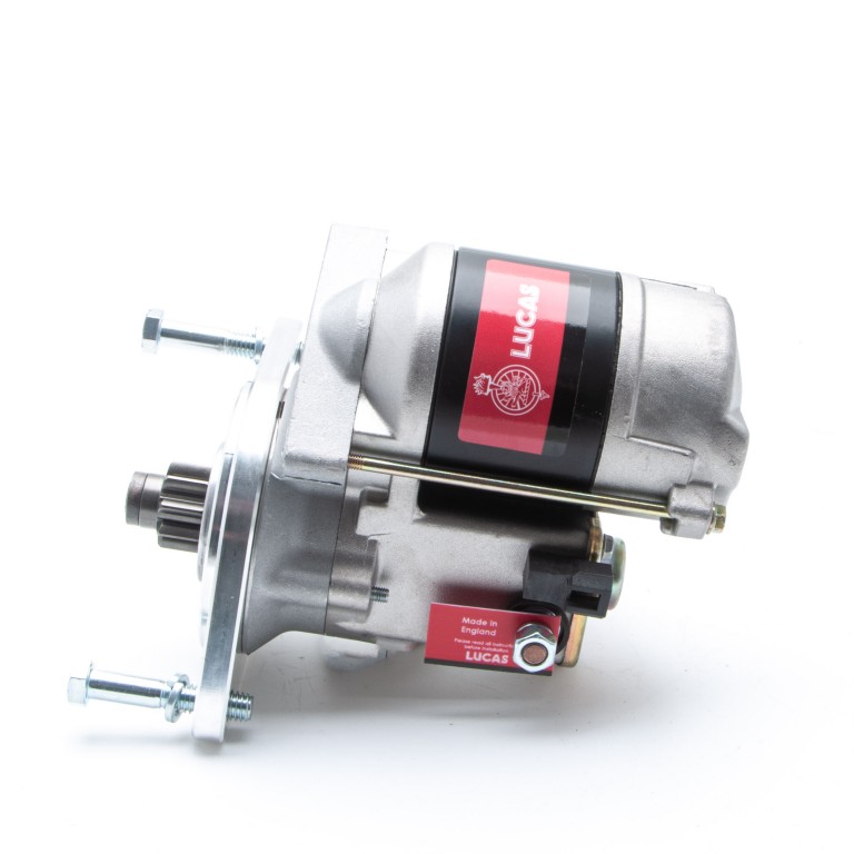 Lucas up-rated, lightweight starter motor with multi drilled plate, fits Jaguar E Type 4.2 Straight 6 (29mm pinion). 9 tooth gear.