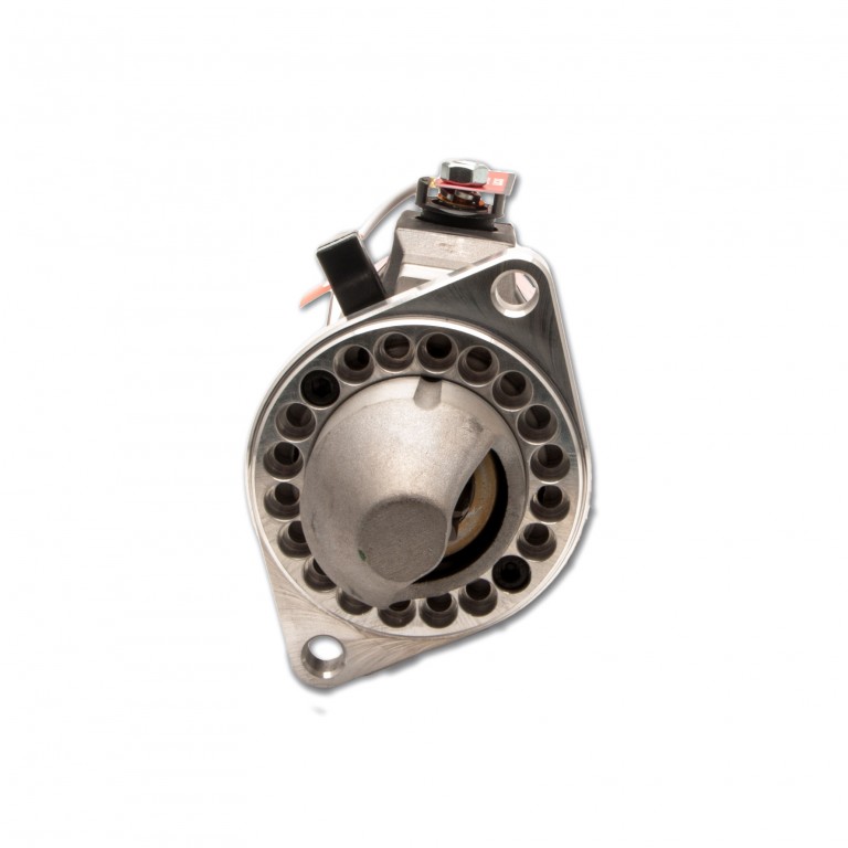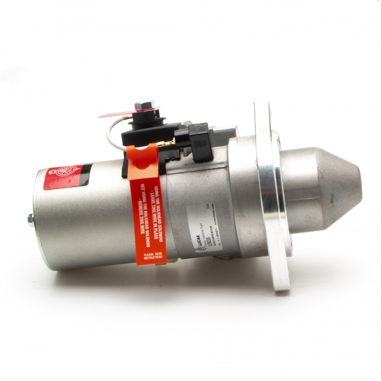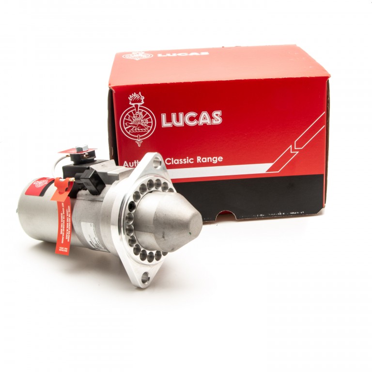 Lucas slimline up-rated, lightweight Starter with multi drilled plate, Mini 1964-80, Elan S4, with multi drilled mount, to replace 4.5 inch inertia types with 9 toothed gear.