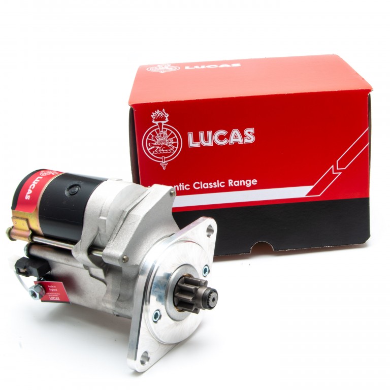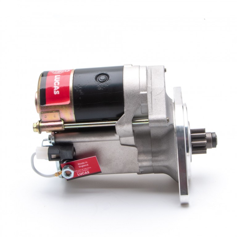 Lucas ultra compact up-rated, lightweight starter motor, fits Triumph Spitfire 1500 from engine no FM93158 and fuel pump THC3417. 9 toothed gear.