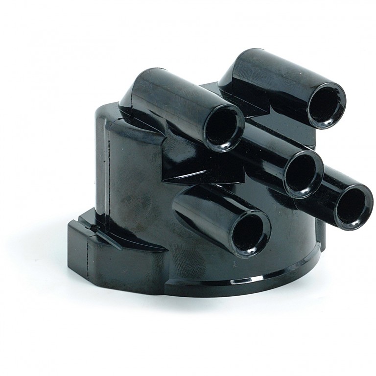 Side entry distributor cap to fit the 45D4 Lucas distributor. This cap is suitable for use with push-in type HT lead terminals which are available to purchase separately if required. This cap is held onto the distributor body by either two screws or the normal spring clips. A top entry cap is also available. This cap can be used in place of Lucas part number DDB194 or 54400270