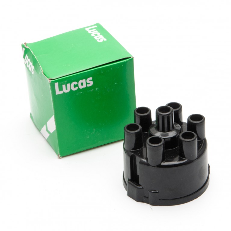 Distributor cap to fit the 45D6 Lucas distributor. This cap is suitable for use with push-in type HT lead terminals which are available to purchase separately if required. Side entry caps are also available. This cap can be used in place of Lucas part numbers DDB113, 54423548 and 54427838. AAU1267, AEU3096, GDC131