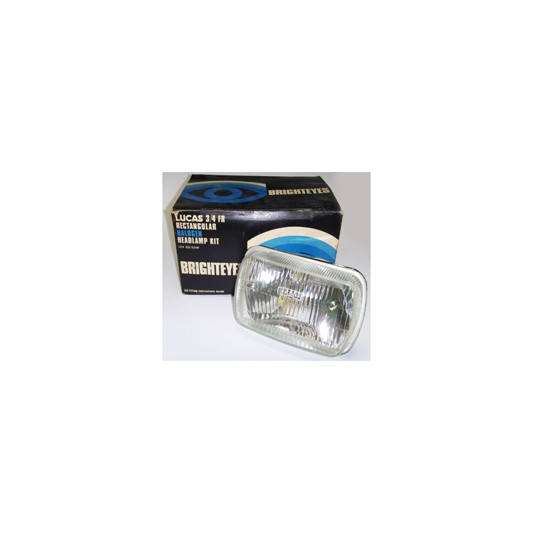 Lucas Brighteyes Replacement Lighting set. Consists of a p air of 3FR Halogen Headlamp Units, Halogen 60/55W Bulbs, side light bulbs and holders. This kit is specified for fitment to Ford Capri (1970/71), Chrysler Avenger (Super & De-Luxe) and Triumph Toledo. The item is still in its original packaging and is virtually untouched since being manufactured. Lucas New Old Stock, We have limited numbers available.