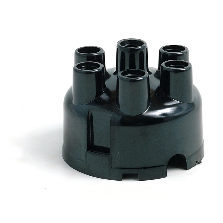 A reproduction top entry cap for Lucas DX6 and DZ6 type distributors. This cap has screw-in connections for the HT leads and requires acorns and split brass washers to fit these leads. All these components are available to order separately. This cap can be used in place of Lucas part number DDB161 407043 and Remax ES215