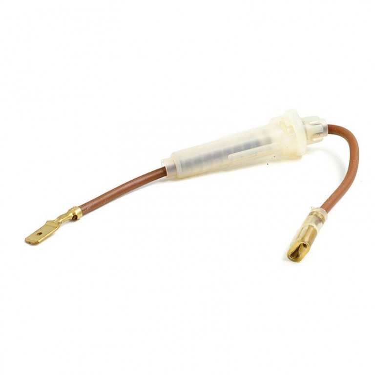 Lucas In-line Fuse Holder for inserting into a wire to protect a piece of equipment. This holder takes a single glass fuse (not supplied) and has a male blade terminal at one end of the connecting wire and a female at the other. Useful if you are adding an electrical accessory to your car. CAB389