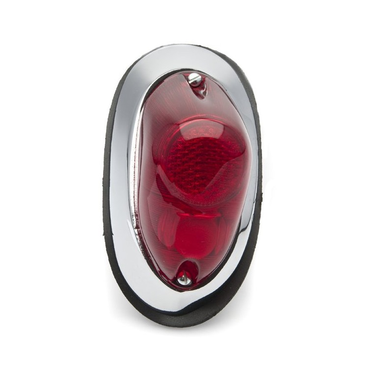 As fitted to early Morris Minor. The back body is shaped to allow the lamp to sit on the contour of the rear wing. This is the lamp for the left hand side of the car. 37H5162