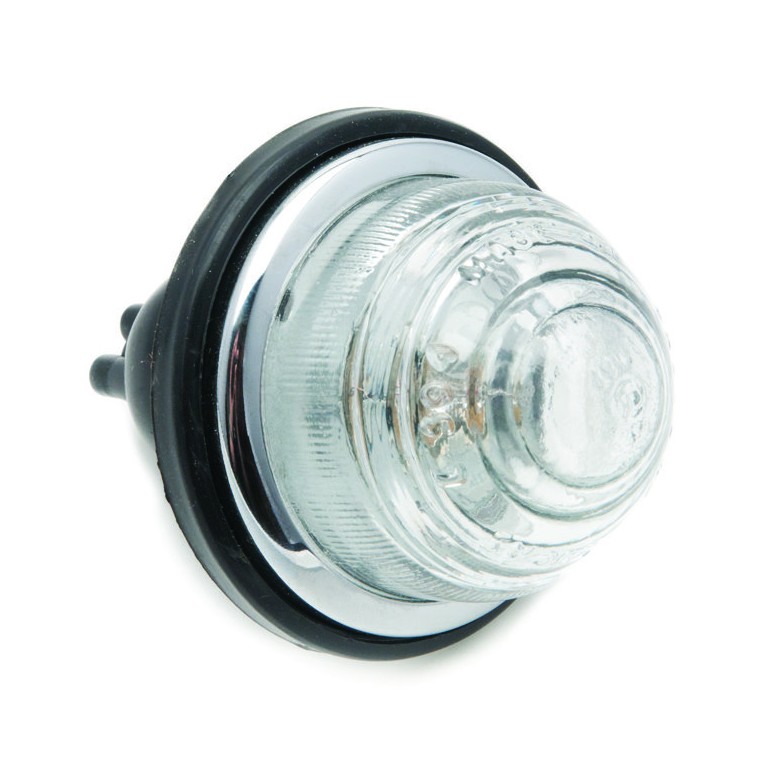 The classic Lucas L594 pattern lamp, as used from the late 1940's onwards and fitted to many different vehicles, including Land Rover, Morgan, and Morris Minor. This version is supplied with a sinlge contact 12 volt (BA15S) bulb. A six volt bulb can be substituted and needs to be ordered separately. Supplied with a glass lens exactly as the original. Rim diameter 71.5 mm, requires hole 33.4 mm diameter