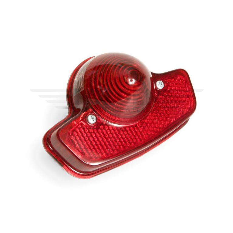 Reproduced version of the Lucas L679 Stop and tail lamp as fitted to many British motorcycles of the 1960's and 70's. The lamp has a clear part in the lens to allow illumination of numberplate. Supplied with a 12 volt double filament bulb. 6 volt bulbs are available to order separately