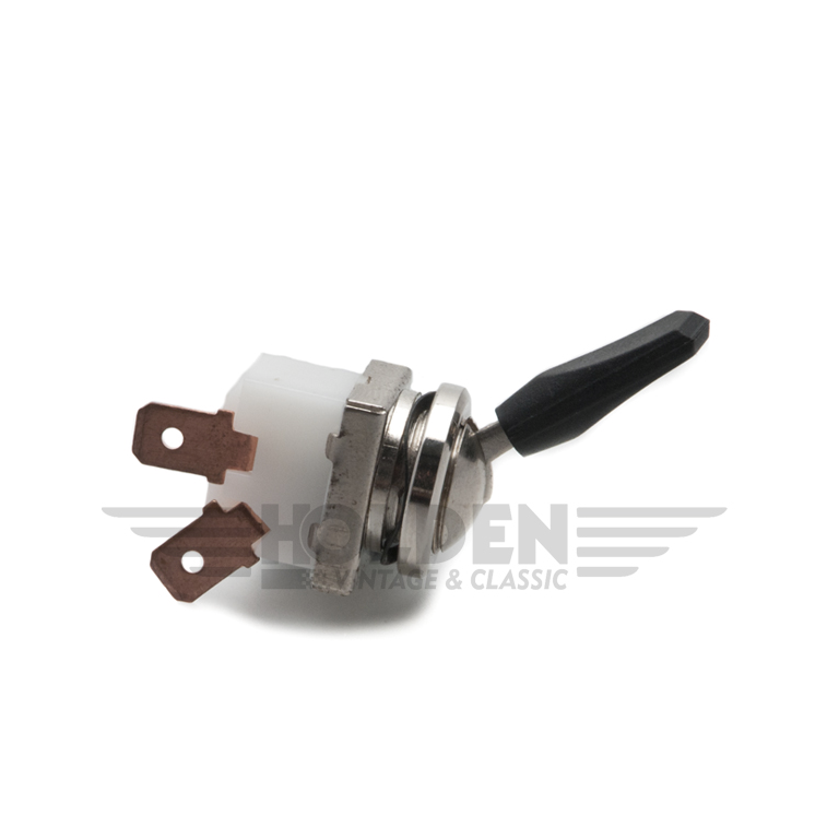 Quality reproduction of Lucas general purpose off-on toggle switch with black lever and chrome bezel. Requires hole 14.5mm diameter. Rated at 5 amps on 12 volt systems