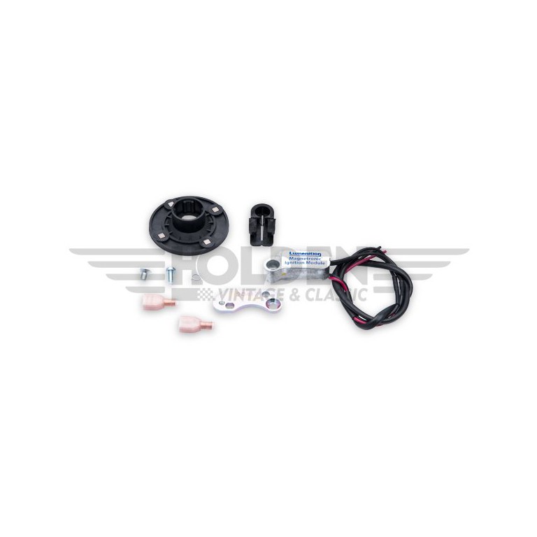 Replaces Points and Condenser on Lucas 22D, 23D, 25D Distributors. Fits completely within the Distributor maintaining the original look. Simple two wire connection and installation. Uses the standard coil. Clockwise rotation when viewed from the bottom. Negative earth only. For the 6-cylinder version refer to 030.340/6.