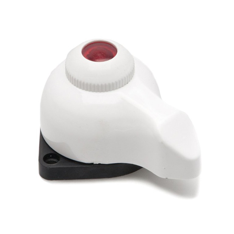 Lucas SPB120 surface mounted indicator switch. This switch features a red warning lamp in the centre, The switch has a sprung roller to make the contacts between the terminals on the rear, which provides a very positive action when operated. For wiring instructions, please see the links below, where the Wiring Diagram offers instructions for a 4-Pin flasher unit, and the Technical Drawing offers Instructions for a 3-Pin flasher unit. AMK9798, MBU2068, 3H2161