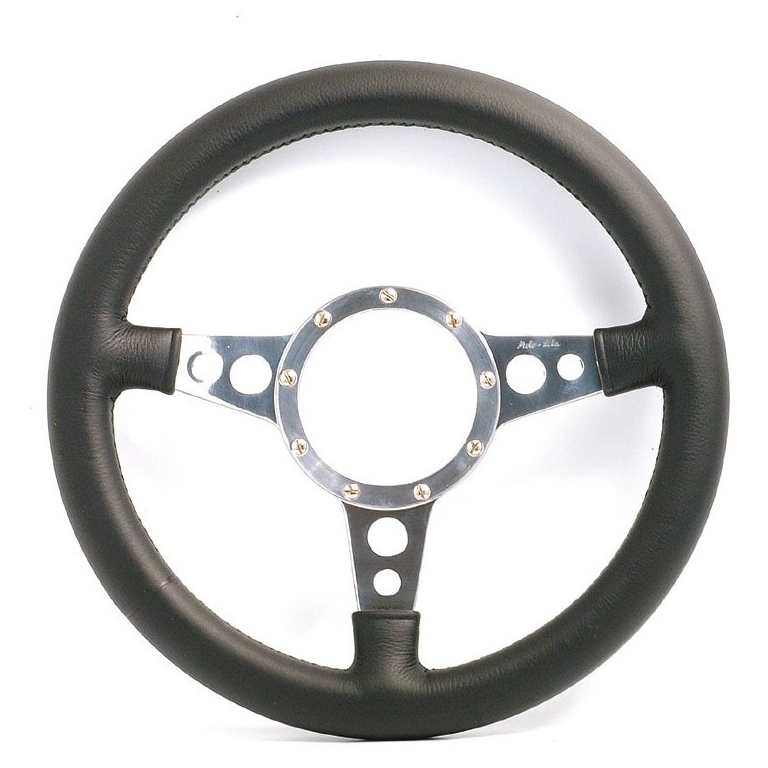 The classic British leather rim Steering Wheel by Moto-Lita. Made from top quality black leather handsewn over a natural rubber handgrip, with each spoke having an integral soft padded thumb grip. The traditionally drilled aluminium alloy spokes are polished. This one is dished, for flat refer to 090.082. You will also need a boss refer to 'Steering Wheel Bosses etc.'