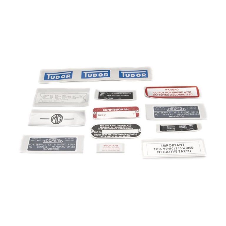 A set of reproduction Decals for the under bonnet of this particular car. The Decals are either adhesive or metal like the originals