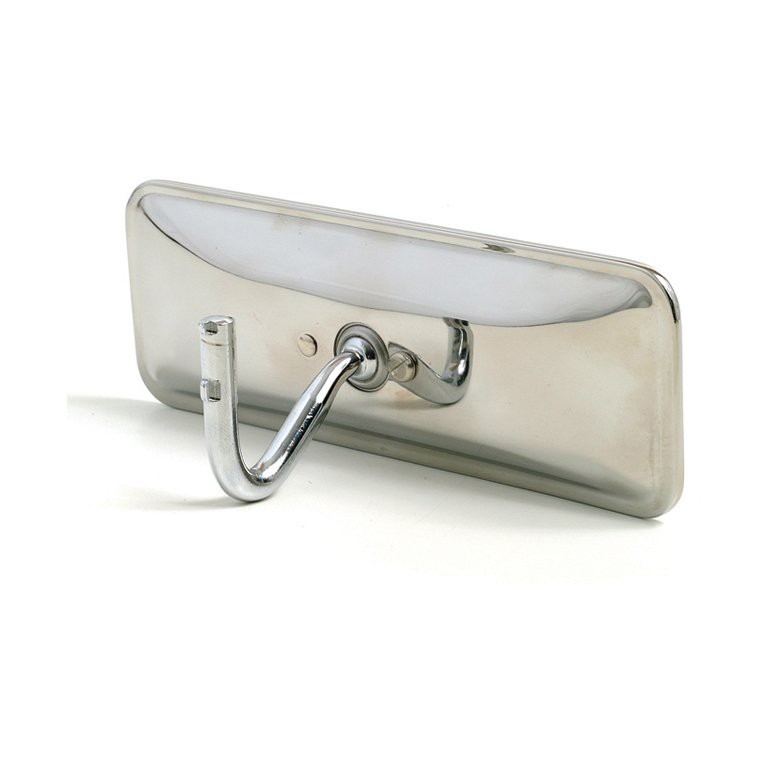A stainless steel mirror head with convex glass. The mirror has a cranked arm with swivel a ball end for adjustment. The mounting arm is designed to slot into the existing windscreen casting and clamp. Designed to replace factory fitted parts and is made from the best quality materials to a very high standard of finish. Ideal as a finishing touch to a restoration or simply to replace tired current parts. British made. Mirror face is 126mm x 54mm