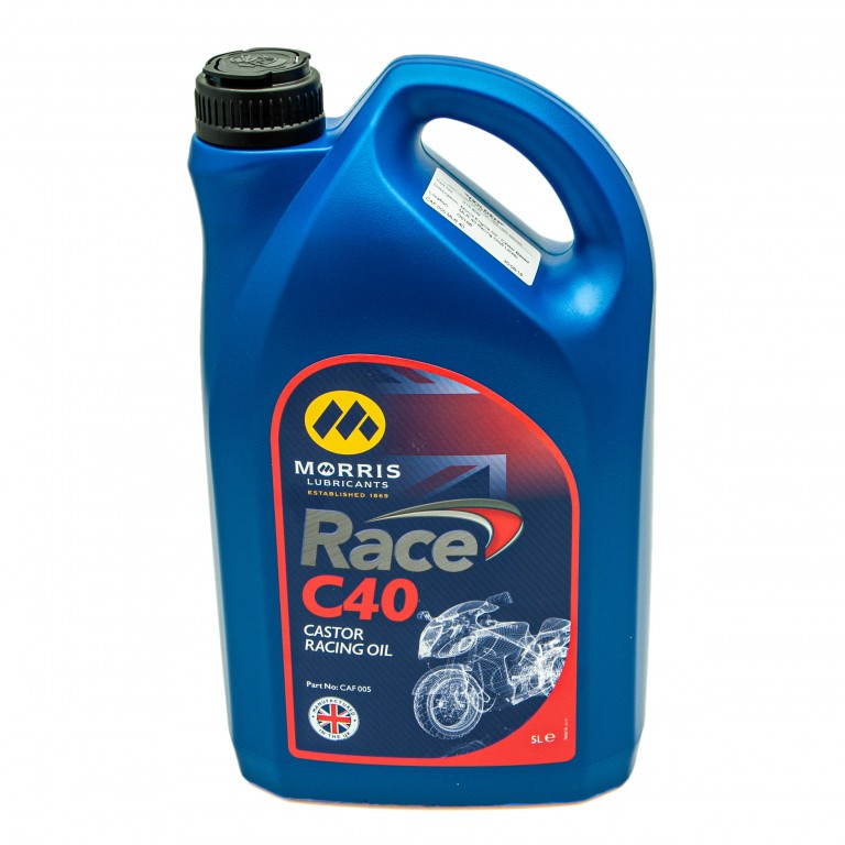 A castor based engine oil formulated for four stroke motorcycles, grass track and classic machines where castor based products are preferred. Made from high quality, first pressing castor oil, combined with recently developed synthetic additives which help eliminate problems of viscosity instability and lacquer build up traditionally associated with castor products. Race C40 (Formerly MLR40) mixes freely with petrol and methanol fuels and can be used as pre-mix 2-stroke oils. Used extensively for classic high performance racing engines