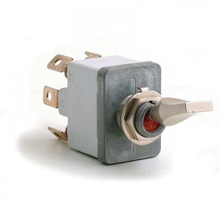 An Off-on-on toggle switch, useful for lighting, heater fan, or even 2 speed wipers when used in conjunction with a relay The very best in Toggle Switches - approved to CECC 96201-004. Used by many of the top international motor sport teams. Alloy topped switch housing with bright nickel lever, environmentally sealed to IP67 and IP69K to protect from ingress of moisture etc. Rated at 35 amps on 12 volt systems. A full range of switch functions is available. Requires hole size 12mm, or can be fitted to a 14.5mm diameter hole by using Threaded Washer and Bezel or Nut . This enables you to replace original Lucas switches on your car with this professional model
