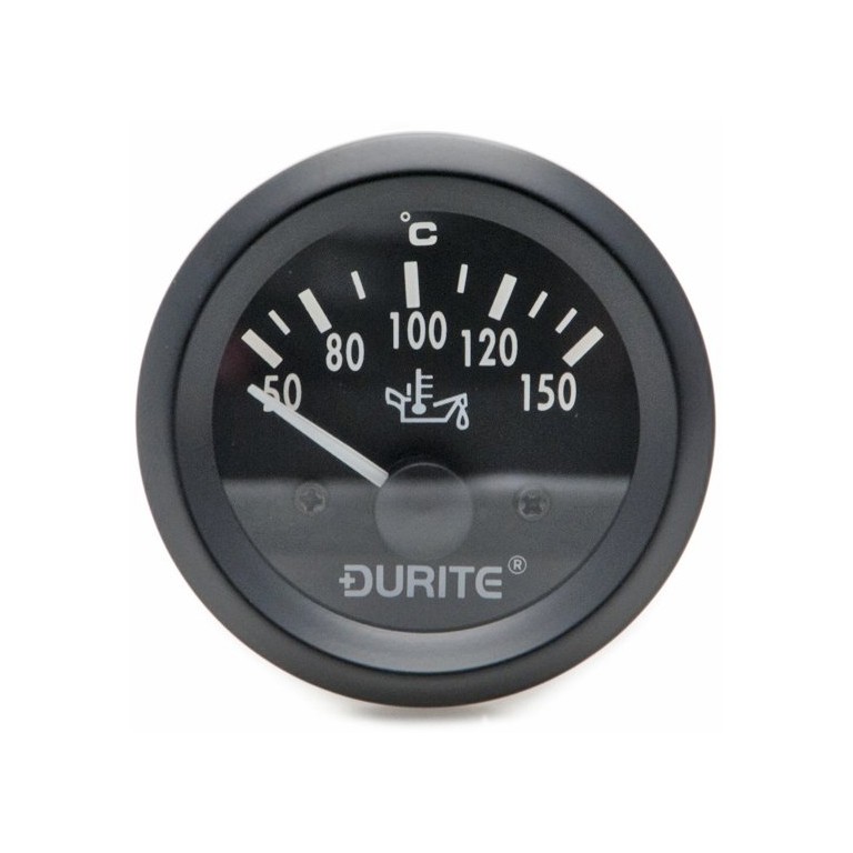 A 52 mm diameter 12 volt Oil Temperature Gauge with white graphics on a black dial and with a black rim. Complete with 1/8 in NPTF sender. Comes with full instructions. (Ballast Resistor not needed)