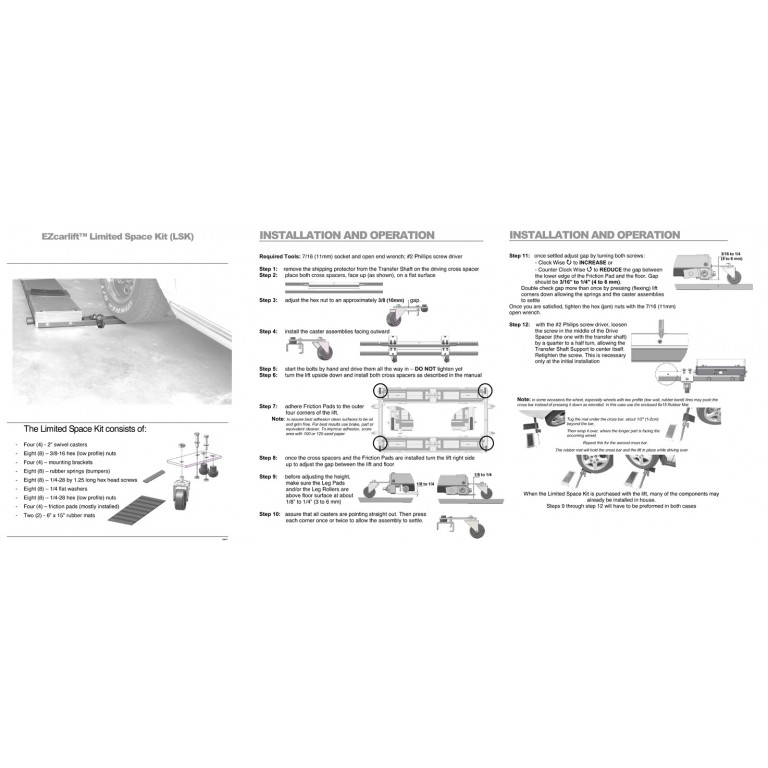 Comprises a set of four swivel casters for the lift as an alternative to the standard ones. Developed for single car garages but also for overcrowded garages. With these fitted you can drive the vehicle over the low profile Cross Spacers and then you roll the lift under your car in the usual way.