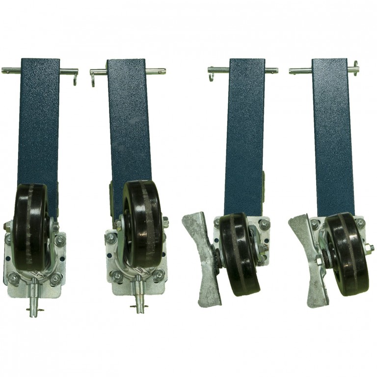 Comprises a set of four swivel casters, two of which have parking brakes on them. The phenolic casters are 150mm (6 in) diameter by 50mm (2 in) wide with roller bearings. They clip onto the legs of the lift and enable you to push the car around your garage. The casters can be left free to rotate 360 degrees or locked in the straight ahead or sideways positions. Useful for moving your car around such as from a storage area to a work area or to win space for an extra car in your garage. Then unclip them and use your lift as usual MADE TO ORDER 3-6 WEEKS.