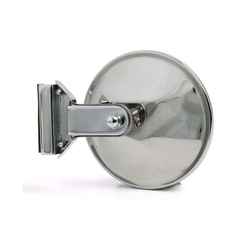 Round mirror which clamps on to the glass channel to give you a view of vehicles overtaking. Flat glass. A convex glass version is available if required