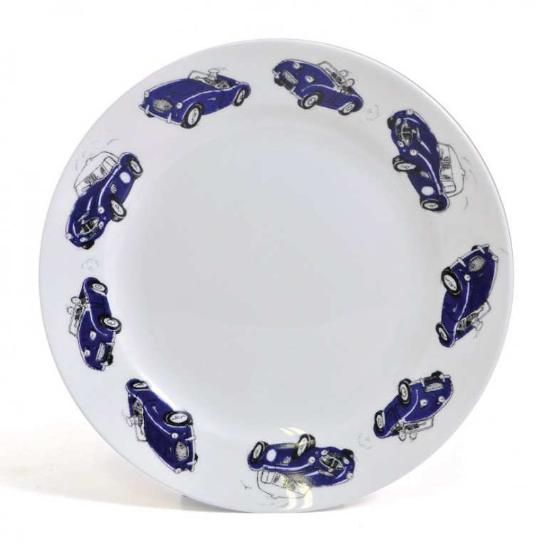 English bone china Plate decorated with AUSTIN HEALEY cars, from a painting by Richard Wade. Reduced price for four or more. For matching Mugs refer to 094.580.