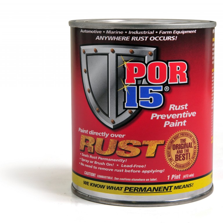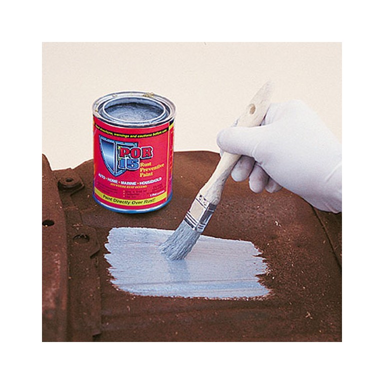 POR-15 Rust Preventive Paint is a high-tech, high performance rust-preventive coating designed for application directly on rusted or seasoned metal surfaces. It dries to an incredible rock-hard, non-porous finish that won't chip, crack, or peel, and it prevents rust from recurring by protecting metal from further exposure to moisture. Use it to coat rusty frames, floor pans, farm equipment, marine equipment, heavily corroded battery trays and can be used also to paint concrete floors. POR-15 Rust Preventive Paint is sensitive to UV light (sun) and must be topcoated for prolonged exposure to sunlight. Topcoating is not required for areas not exposed to sunlight. This paint has a semi-gloss finish