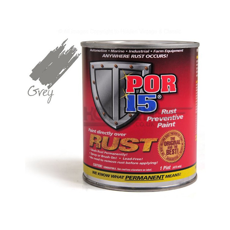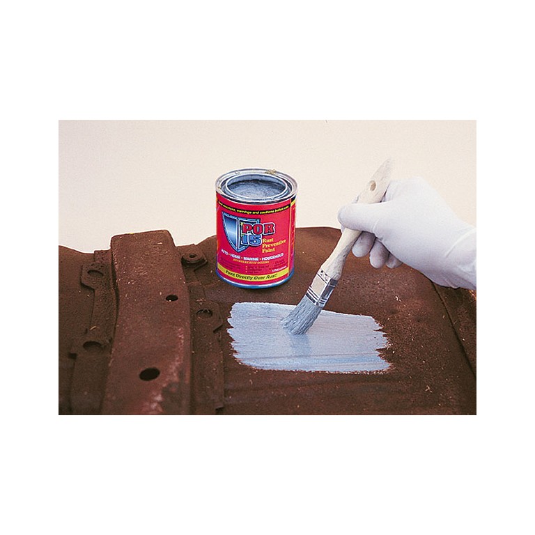 POR-15 Rust Preventive Paint is a high-tech, high performance rust-preventive coating designed for application directly on rusted or seasoned metal surfaces. It dries to an incredible rock-hard, non-porous finish that won't chip, crack, or peel, and it prevents rust from recurring by protecting metal from further exposure to moisture. Use it to coat rusty frames, floor pans, farm equipment, marine equipment, heavily corroded battery trays and can be used also to paint concrete floors. POR-15 Rust Preventive Paint is sensitive to UV light (sun) and must be topcoated for prolonged exposure to sunlight. Topcoating is not required for areas not exposed to sunlight.