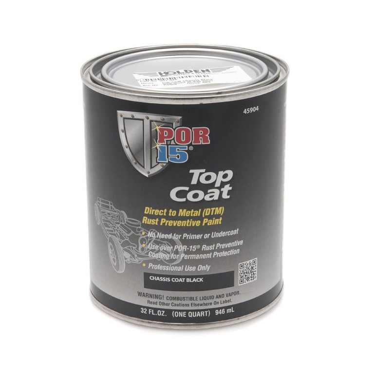 POR-15 Top Coat Chassis Black is a permanent black, smooth satiny semi-gloss appearance coating developed for application over painted and unpainted surfaces. Apply over POR-15 Rust Preventive Paint for the toughest, most permanent protection against rust and corrosion ever developed. It is non-porous and will not crack, chip, or peel when properly applied according to directions. It has amazing scratch and abrasion resistance. It is not sensitive to UV light and may be exposed to sunlight without damaging consequences. It has excellent adhesion characteristics and may be applied over POR-15 Rust Preventive Paint months or years later with proper preparation. Previously called Chassis Coat Black