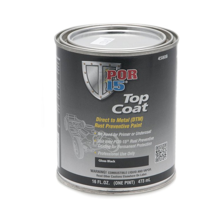 POR-15 Top Coat Gloss Black is a beautiful permanent gloss black coating developed for application over painted and unpainted surfaces. Apply over POR-15 Rust Preventive Paint for the toughest, most permanent protection against rust and corrosion ever developed. Thus paint is non-porous and will not crack, chip, or peel when properly applied according to directions. It has amazing scratch and abrasion resistance. It is not sensitive to UV light and may be exposed to sunlight without damaging consequences. It has excellent adhesion characteristics and may be applied over POR-15 Rust Preventive Paint months or years later with proper preparation. Previously called Blackcote