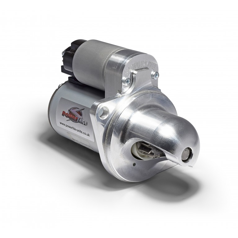 Weighing just 2.4 kilos, this tiny unit kicks out 1.3 kW of high torque power via an epicyclic gearbox. The nose cone is machined out of sturdy, solid aluminum and features an embossed Powerlite logo. The entire unit is not much longer than a ballpoint pen – perfect for tight, compact race engines. Fitting the evergreen Classic Mini with the verto flywheel.