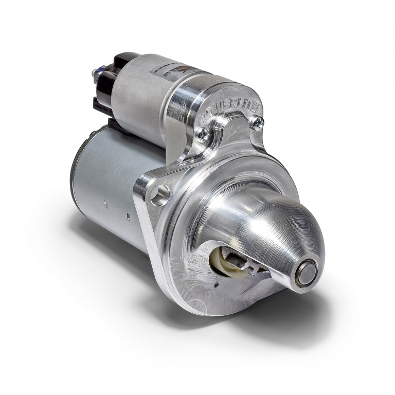 Weighing just 2.4 kilos, this tiny unit kicks out 1.3 kW of high torque power via an epicyclic gearbox. The nose cone is machined out of sturdy, solid aluminium and features an embossed Powerlite logo. The entire unit is not much longer than a ballpoint pen – perfect for tight, compact race engines. The Micro Start RAC529 replaces the original inertia style starter motor for the evergreen Classic Mini. (Please note this unit is only suitable for Negative earth applications) .