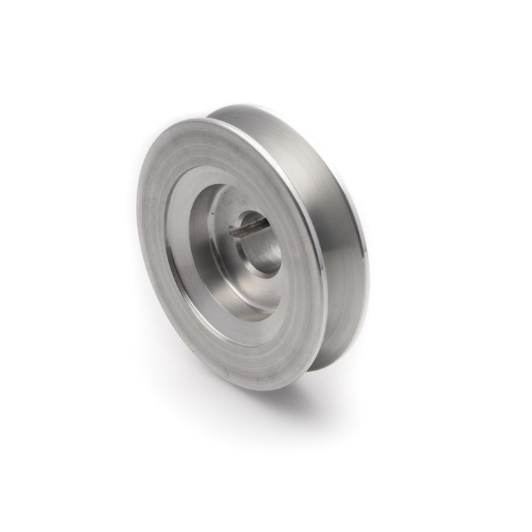 To get the maximum from a Dynalite, it needs to run faster than the original Lucas dynamo. To enable you to do this we offer a pulley that is smaller in diameter than the original. When fitted to your Dynalite it will have the desired effect. This pulley is suitable for Dynalite C45 which has a 17mm shaft. Machined from solid aluminium billet and designed to take a standard belt.