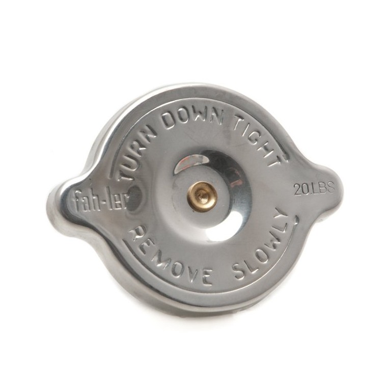 Stainless steel radiator cap which opens under pressure of 20 p.s.i. This cap will fit on a 2 inch radiator neck (Approximately 52mm) A rubber seal is included as part of the cap.