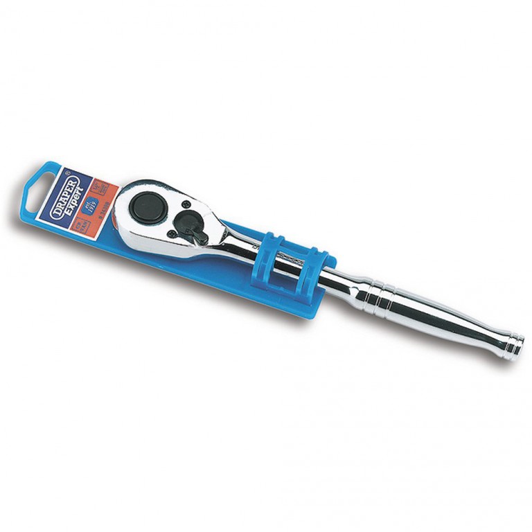Body forged from chrome vanadium steel, hardened, tempered, chrome plated and polished. 250 mm long with 45 tooth ratchet and forward/reverse selector. Sprung ball to retain sockets securely and quick release mechanism for easy release of sockets and accessories