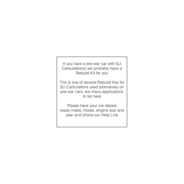 Contains new jet, float valve, all gaskets and seals, throttle disc and screws, spindle and spindle bushes to rebuild your SU Carburettor. Please note, however, that the NEEDLE is not included and should be ordered separately