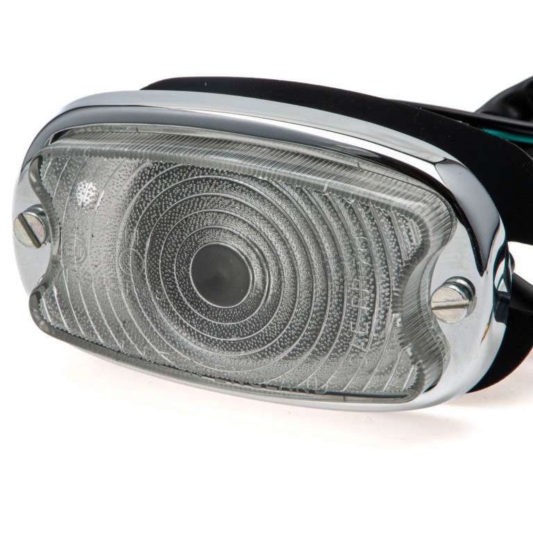 L595 as fitted to 'E' Type Jaguar. Can also be fitted to other cars. 106mm wide by 58mm tall. Requires a flat panel with 75mm clearance at the back.