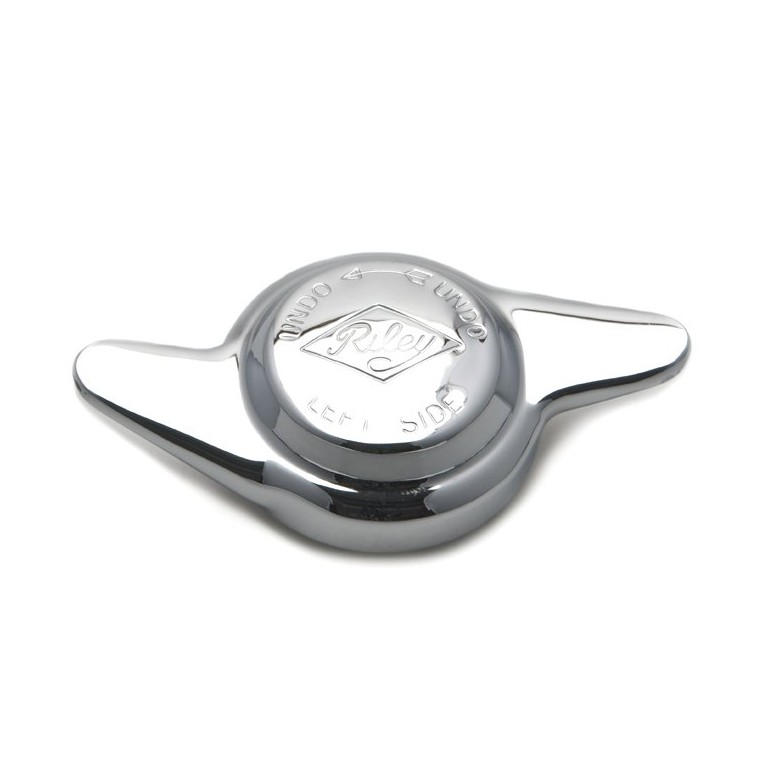 Quality Wheel Spinner (or Hub Nut) for Riley Left Hand Side. The thread on the hub is 42mm diameter, 8 threads per inch. With Riley logo and as used on Riley cars
