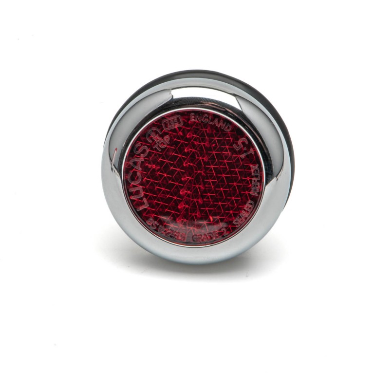 Red Reflector with chrome rim, central screw fixing. 52mm diameter RER25 LAB701, 11G9021
