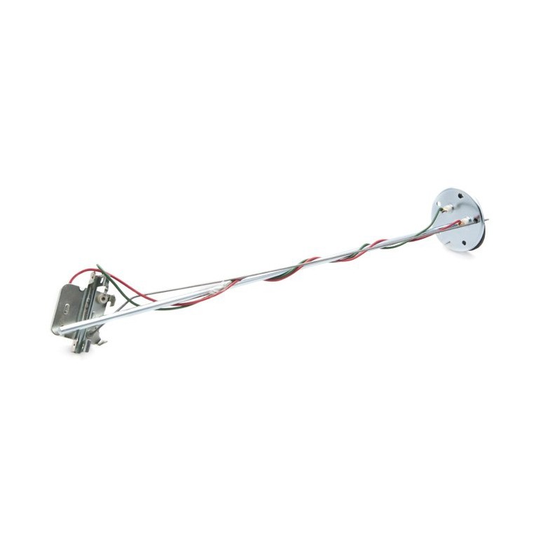 Top Mounting. Five hole flange fitting. Rubber gasket supplied. The vertical rod is cut to length, the rheostat is secured to it and the float arm is cut to length. The instructions supplied give dimensions for this work. This makes the sender adjustable for rectangular tanks of depths between 180mm and 660mm. Resistance reads approximately 10 ohms full and 180 ohms empty on 12 volts. Negative earth only!