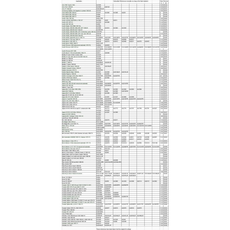 SU Carburettor Service Kits