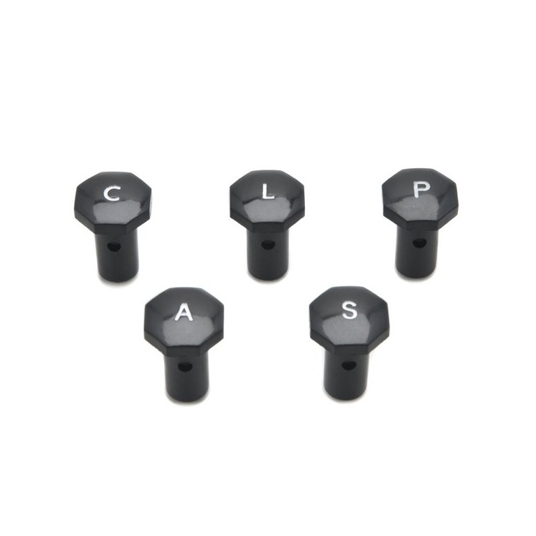 Made for the MG TF, this is a set of 5 octagonal knobs with letters 'A', 'C', 'L', 'P' and 'S' which fit Lucas switches with a hexagonal shaft, whether they be of the Push-Pull or Rotary type.